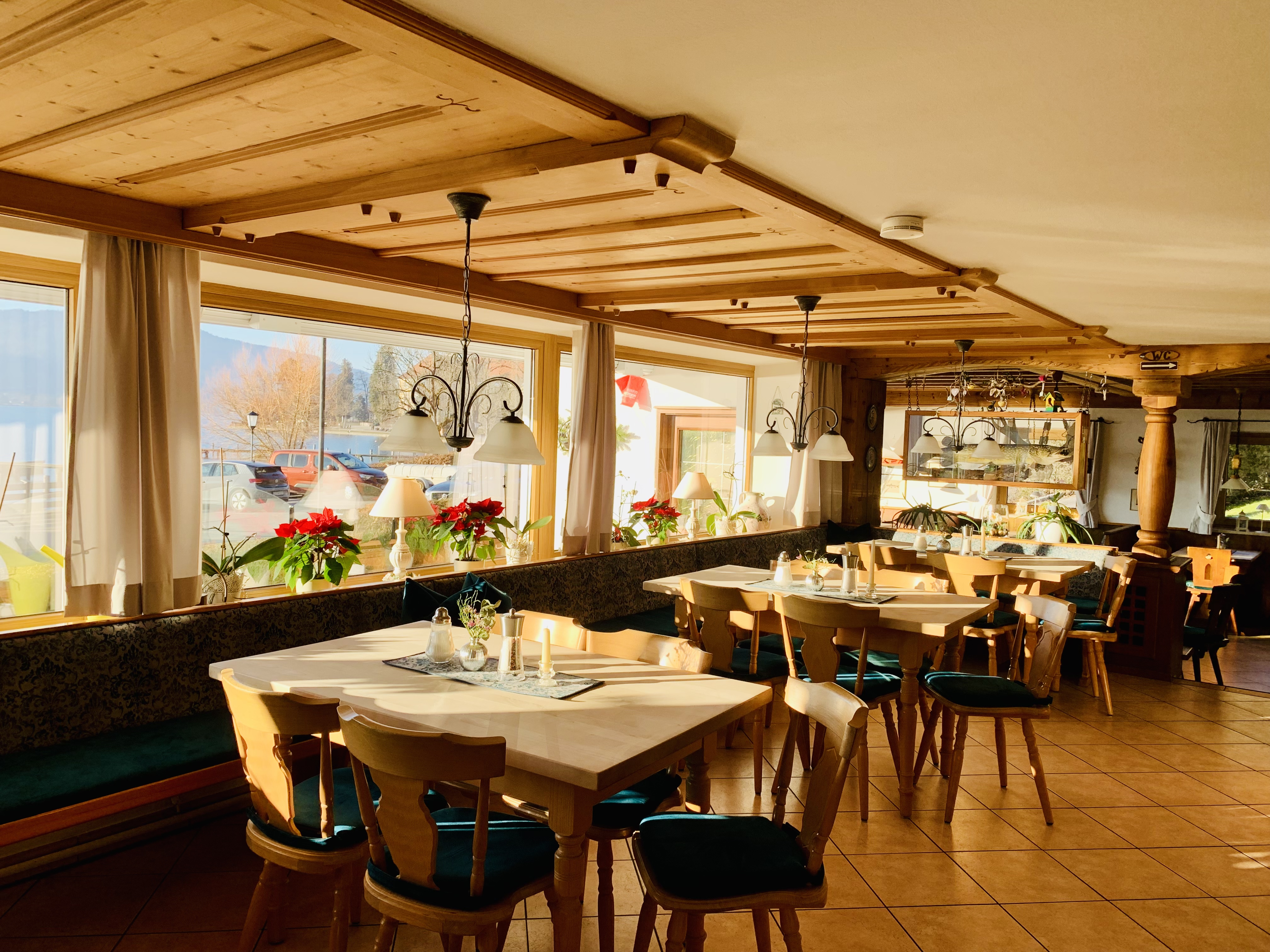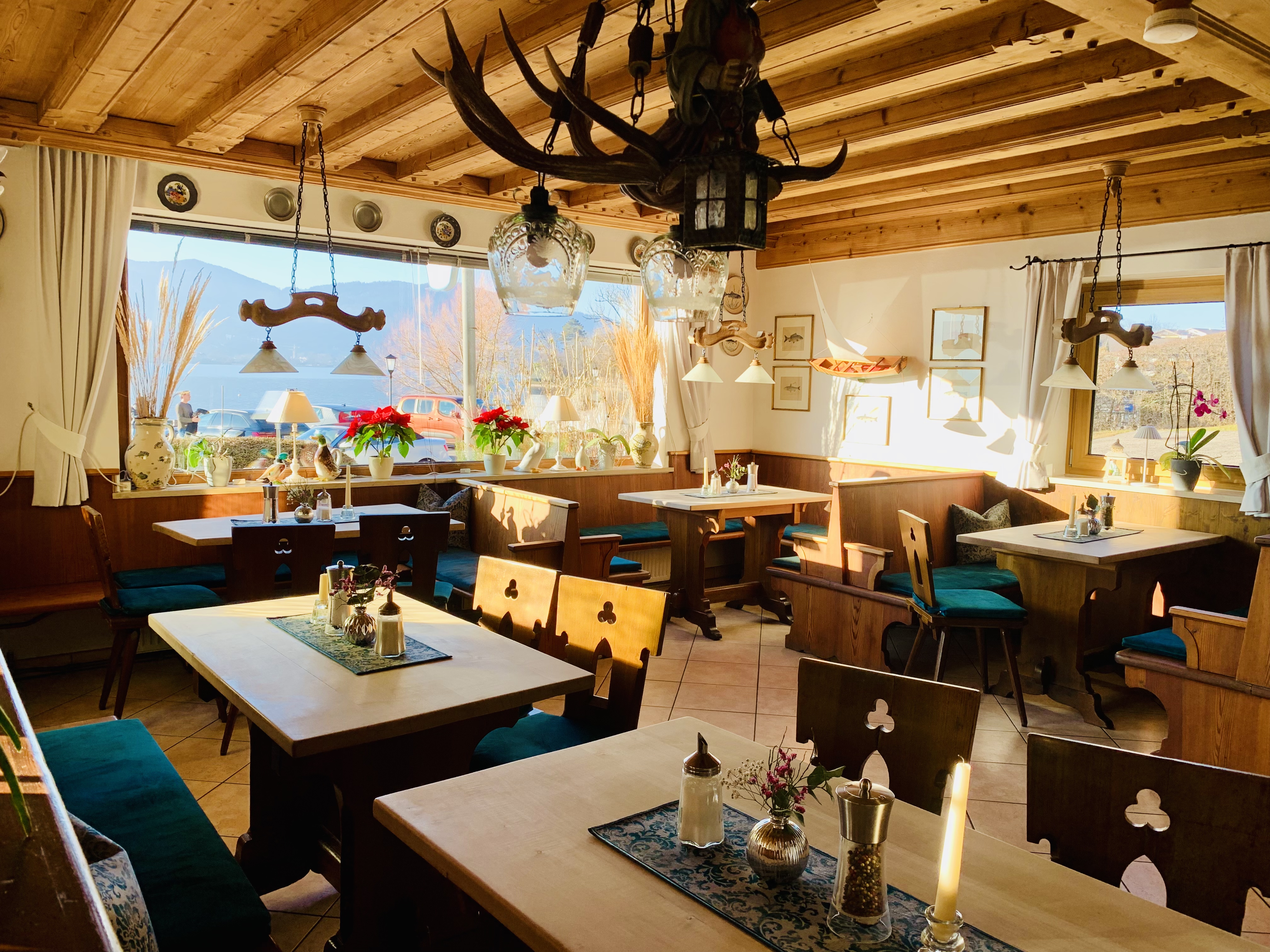In unserem Restaurant am Tegernsee in Bayern genießen Sie in gemütlichen Gasträumen mit Blick auf den See oder auf der Terrasse die weitum bekannten Fischspezialitäten von fangfrischen Renken, Saiblingen, Forellen, Zander aus dem Tegernsee. Dazu servieren wir ein kühles Bier aus dem weltbekannten Herzoglich-Bayerischen Brauhaus Tegernsee oder einen gepflegten Tropfen aus unserem Weinkeller.